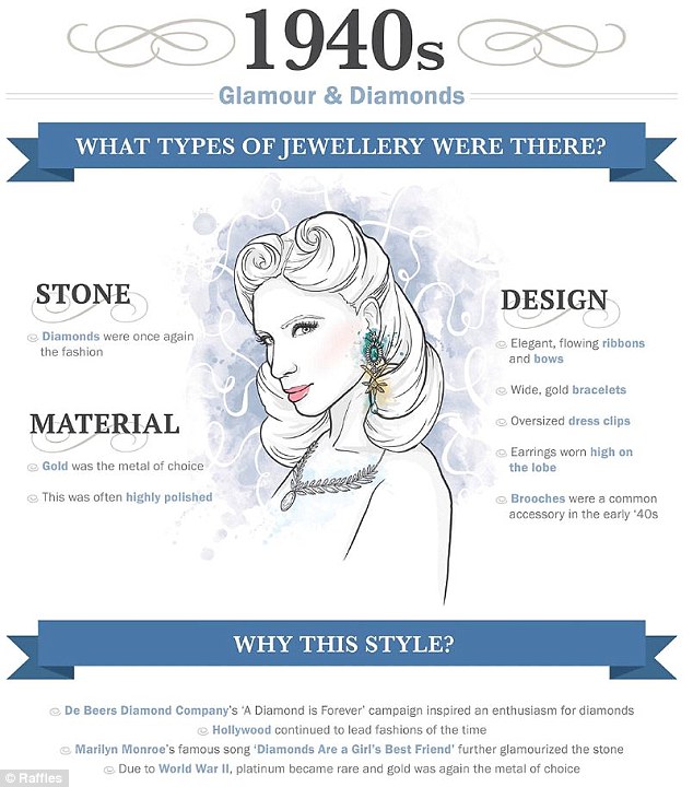 無論是簡單的絲帶和蝴蝶結或鑽石鑲嵌的陳述,40年代的女性都充滿優雅,魅力,當然還有鑽石。