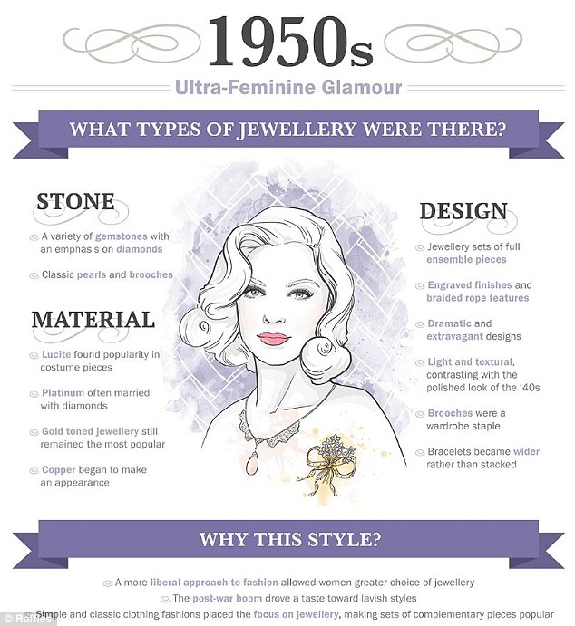 這個時代的女主角,像伊麗莎白·泰勒,都是塑料首飾,牛奶玻璃,明亮的色彩,通常由珠子和花卉圖案製成的分層項鍊。