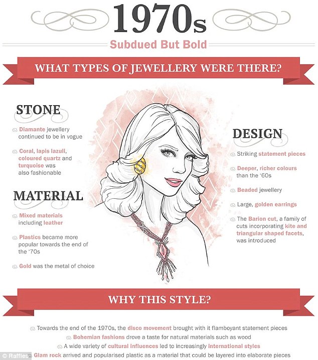 20世紀70年代的女性喜歡用珠寶來表達大膽的聲音,不用擔心太過華麗或有活力的選擇。