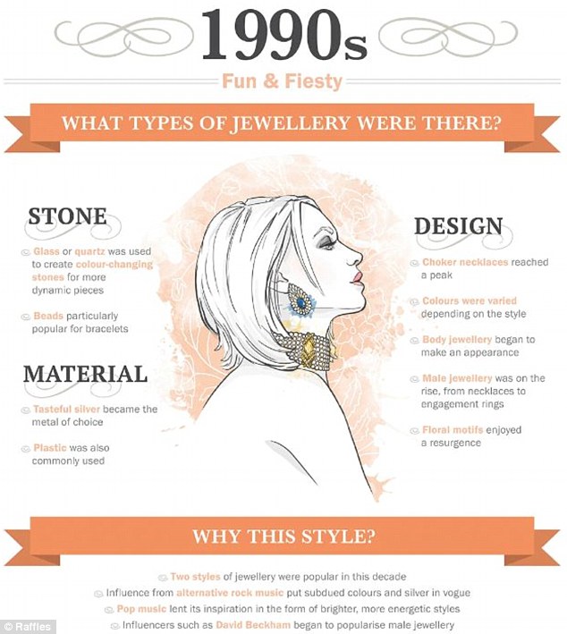 朋克音樂浪潮在此時達到頂峰,當時的詹妮弗·安妮斯頓(Jennifer Aniston)和布蘭妮·斯皮爾斯(Britney Spears)在頒獎典禮上配戴貼身的珠寶,雅緻的銀片,柔和色彩的塑膠材質。
