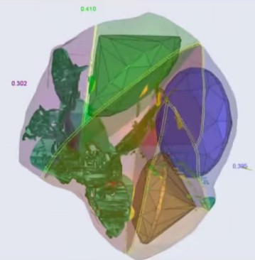 彩鑽則無法用儀器輔助計算,因為決定彩鑽價值的最大因素是顏色,切割師必須根據該原石的色塊分布狀況進行形狀及大小的評估。