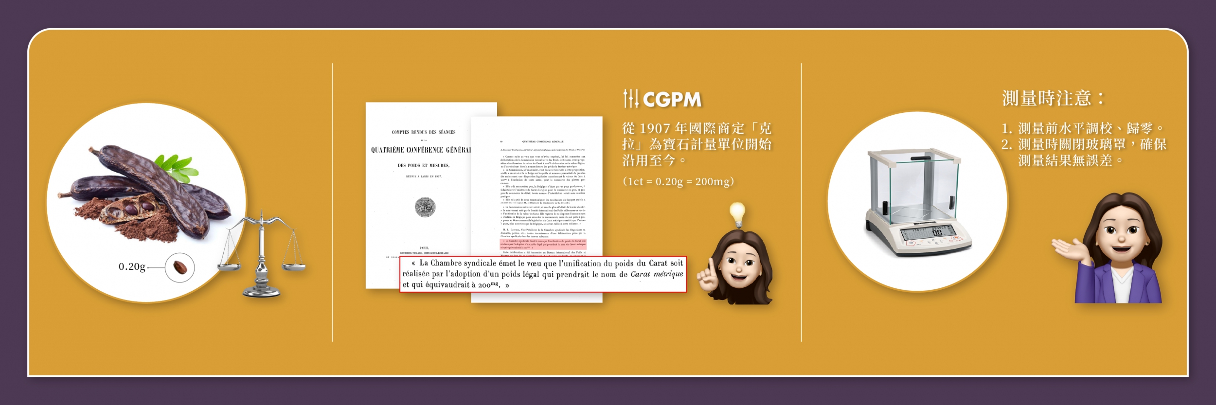 1907 年第四屆國際度量衡大會 CGPM(General Conference on Weights and Measures),正式將克拉定義為 0.2 公克,這一標準化過程,使克拉成為國際上公認和使用的重量單位,同時也是衡量寶石重量的標準。以克拉作為重量單位不僅因為歷史淵源,還因其方便性和一致性,讓珠寶行業能夠在國際間進行統一的評估,尤其在鑽石交易中。