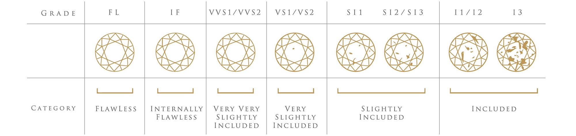 大部分鑽石其實或多或少的都會有一些瑕疵內含物,比如外部的刮痕、缺口,內部各種類型的內含物等等,這些不同種類的瑕疵雖然會減損鑽石的美,但也為鑽石增加獨特魅力,使每一顆鑽石都是獨一無二的。所以在購買鑽石時,很多消費者也都不追求絕對的純淨,基本上肉眼上的乾淨就很受歡迎。真正完全純淨的FL級鑽石不僅在市場中極為罕見,價格方面也非常昂貴,真的是可遇不可求的。