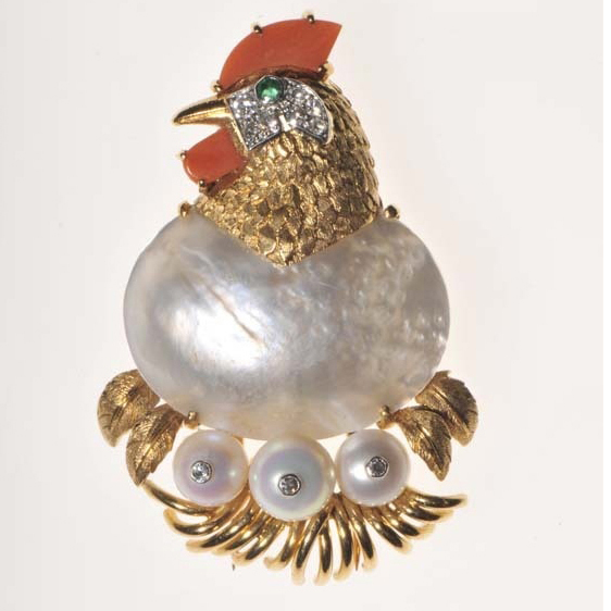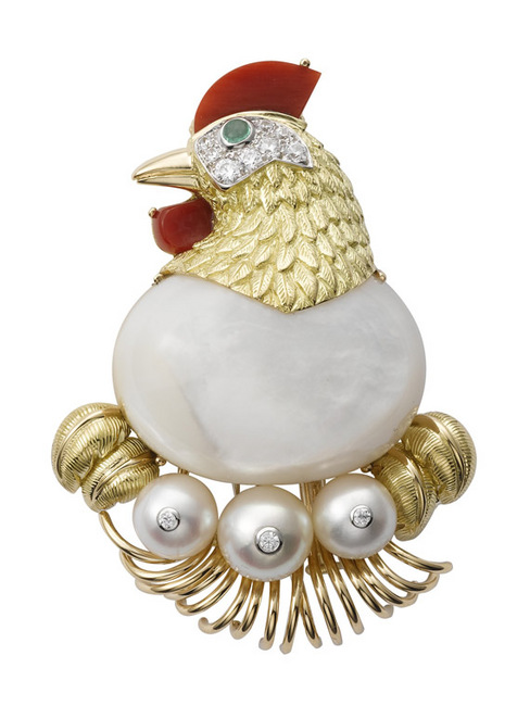 ▼以1957年製作的母雞造型造型胸針為藍本(左為原版)