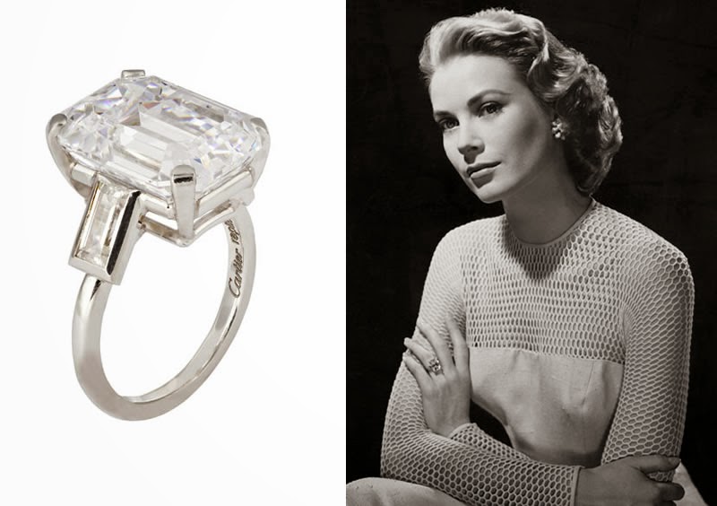 ▼摩納哥王妃葛麗絲.凱利的祖母綠切割訂婚鑽戒(10.47克拉)。