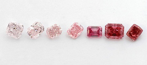 粉紅色與紅色的彩鑽是因為鑽石結晶的晶格扭曲所形成的,綠色鑽石是由於鑽石受到天然輻射影響造成晶體結構改變的結果,因此天然綠色的彩鑽很少,其他顏色的彩鑽則是同時具有微量元素加上晶格扭曲兩項致色成因所形成的。