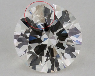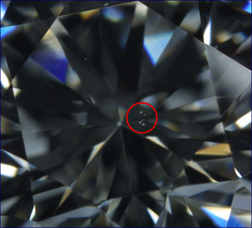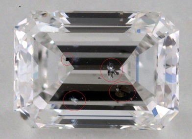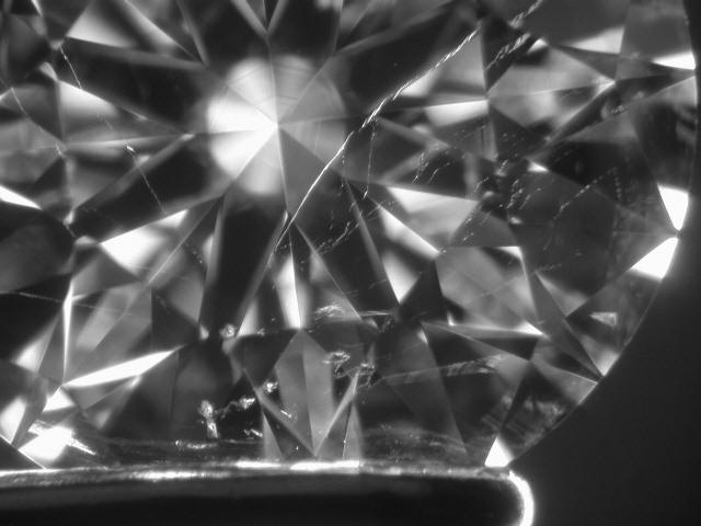 ♦微內含級 (SI) 在10倍放大鏡下觀察,鑽石有清晰可見的瑕疵。