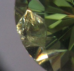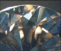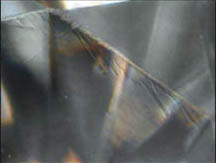 ( 5)拋光紋( Polish Lines)拋光不當所致的細密線狀痕跡,其方向受控於一定的刻面。有時受光的干涉作用,呈現彩色的細紋。拋光紋多發育於亭部刻面近底尖附近。