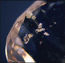 ( 2)點狀物(Pinponit )或稱針尖,鑽石內部極小的天然包裹物。有無色和深色之分,單一或成群分佈,它對淨度級別的影響不大。