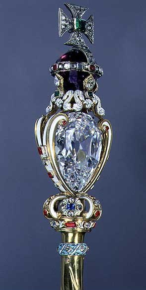 形似水滴的非洲之星第I,重達530.2克拉。被鑲嵌在英王權杖上。