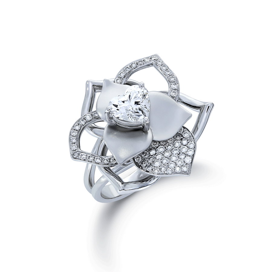 珠寶設計師的巧思與工匠的嫻熟技藝完美現了春風裡的薔薇綻放與舞動的姿態。中間夾層的結構,賦予了鑽石花瓣無限的生命力,彷彿在春日裡溫柔的暖風,帶動薔薇花朵舞出輕巧浪漫的華爾滋,旋轉出一片片心動的浪漫。
