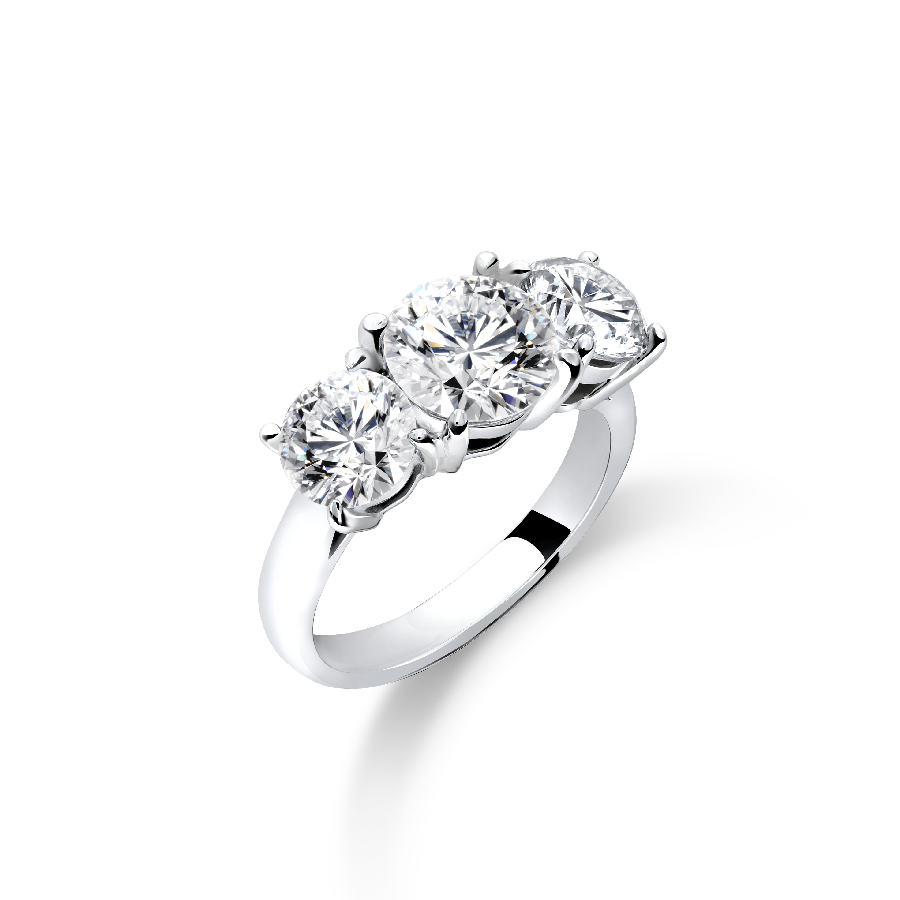 每一段愛,都有屬於它的時間軸。三顆鑽石,象徵「過去、現在、未來」——中央主石閃耀當下的光芒,兩側鑽石輕訴曾經與未來的承諾。