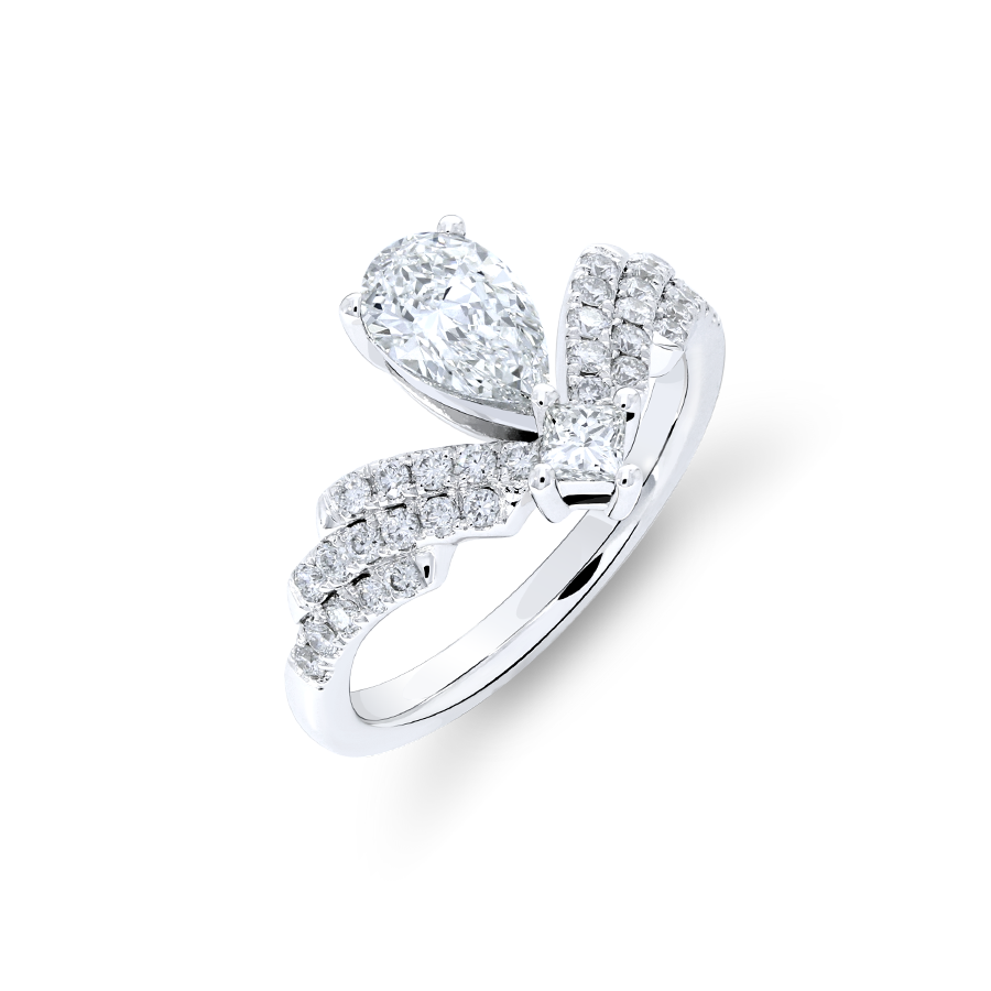 水滴形的主石,閃耀光輝;心形切割,象徵永恆;公主方形,散發榮耀。