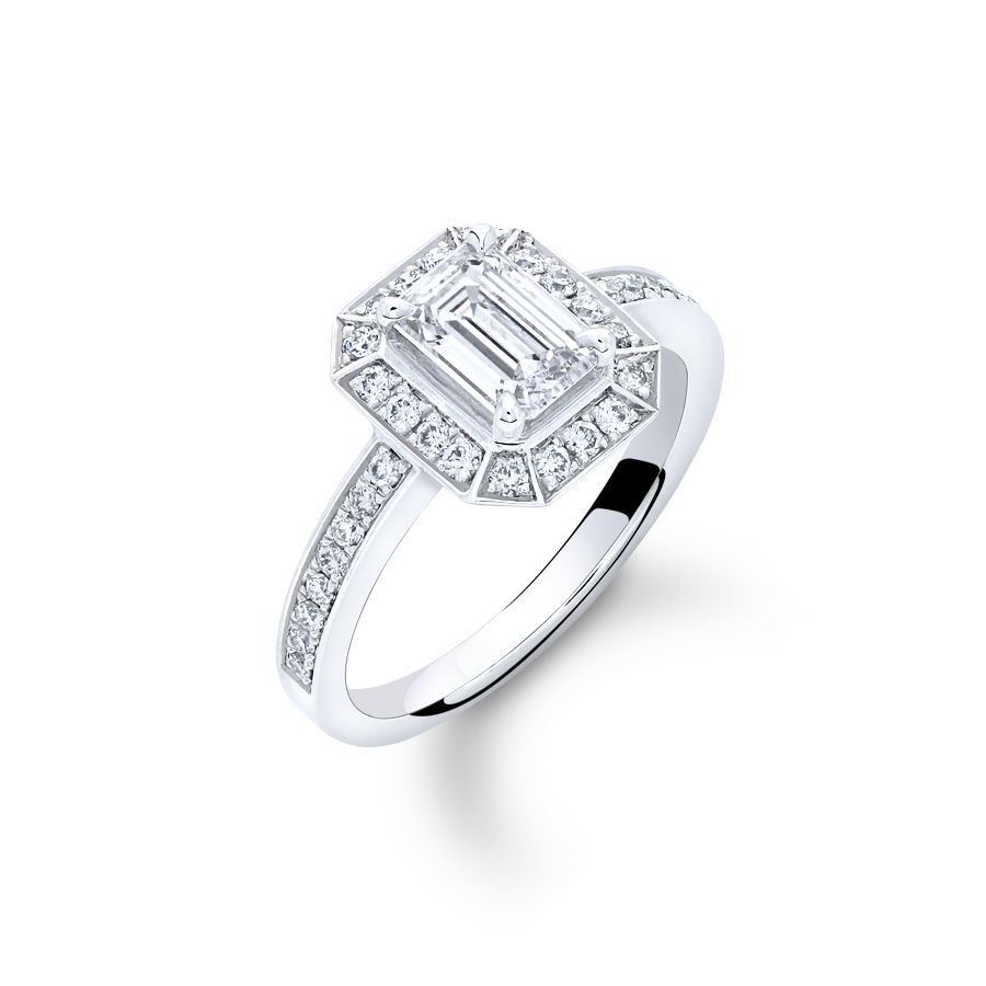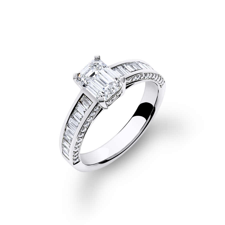 祖母綠切工(Emerald)是典型階梯形切工,其切割成矩形的刻面,創造出獨特的光學視覺的外觀,所有切面均平行或垂直於鑽石,獨特的祖母綠花式切割增添了額外的富貴感,彰顯女性富貴自信、幹練的獨特韻味,獻給可靠忠誠,對生活充滿熱情的您。