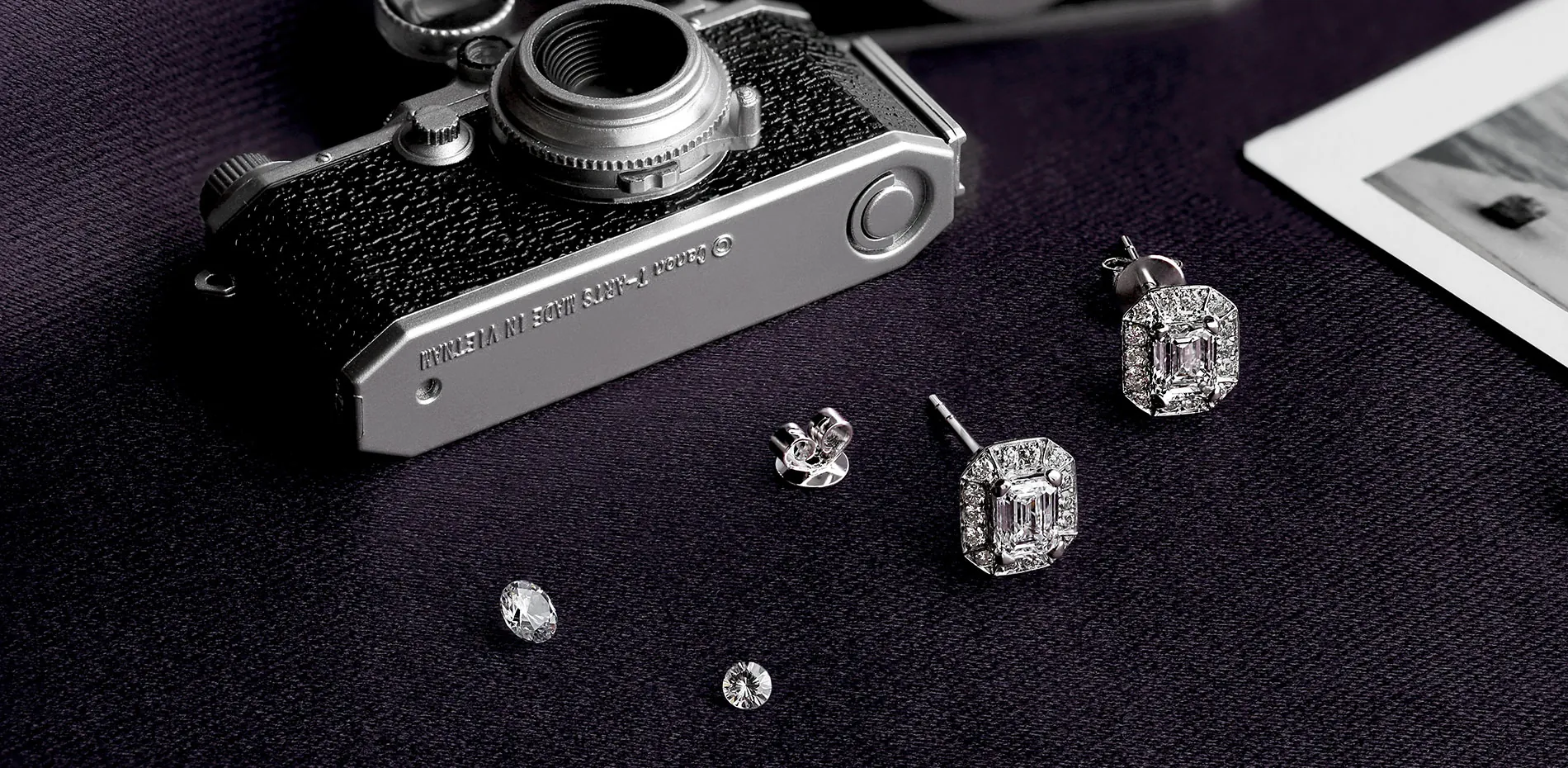 光輝庭園鑽石系列 靈感源自光與結構的交織之美。 以祖母綠車工鑽石呈現層疊光影的純粹優雅, 垂直切面折射出如鏡面般的光感, 在方正線條中綻放內斂的富貴氣韻。 它象徵自信、幹練與獨特風格, 如同光影中的庭園, 每一步都閃耀堅定與從容的姿態。