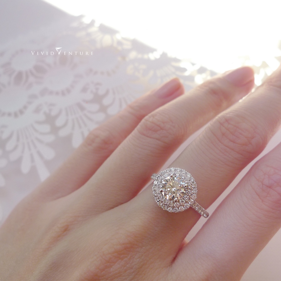此款為圓鑽車工,每顆鑽石都是為紀念生命中最珍貴的事情而誕生,亞帝芬奇以臻選美鑽凝聚每個感動瞬間,雙層光圈緊緊圍繞護衛著中央主鑽,讓主鑽視覺效果更放大。