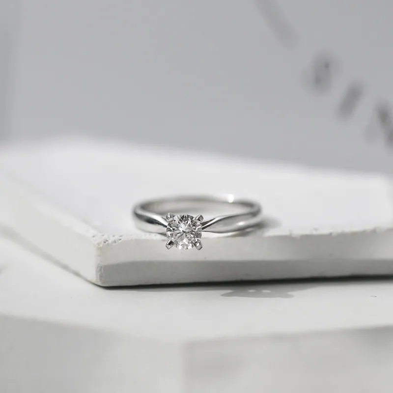 此款為圓鑽車工,簡潔的四爪經典的設計, 是最傳統也最穩定牢靠的款式之一,意謂給你穩固的愛,恆久不變。